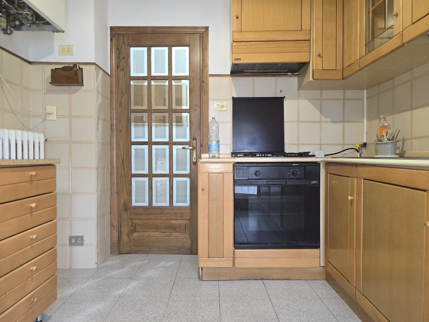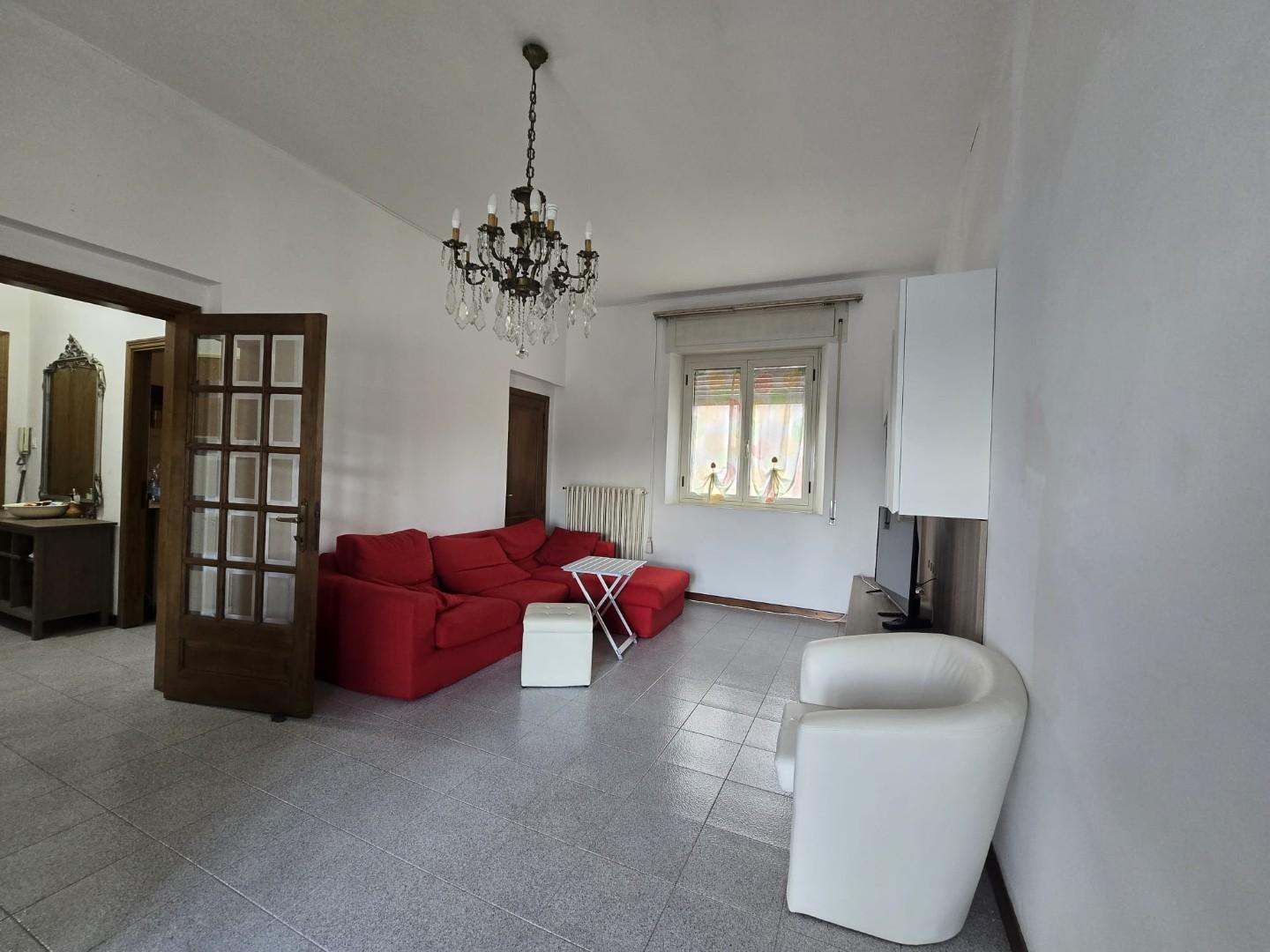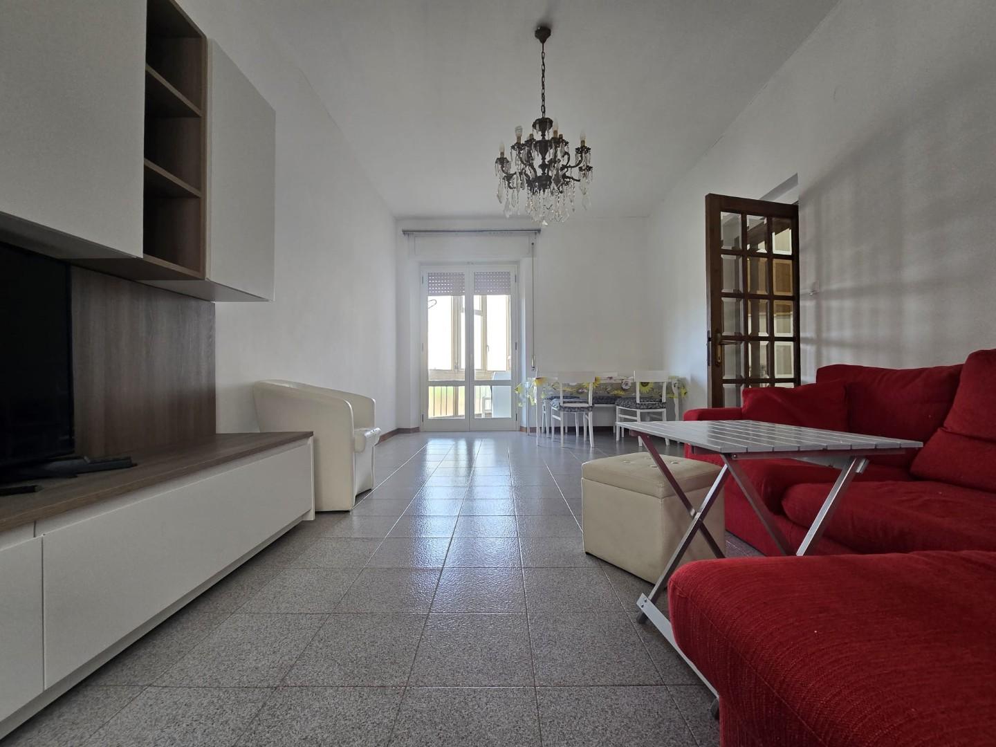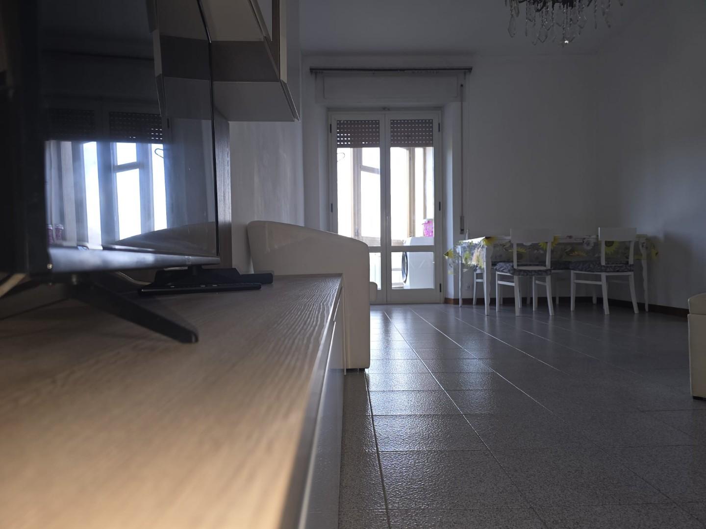 Il soggiorno, ampio e particolarmente luminoso, è valorizzato dalla presenza sia di una finestra che di una porta finestra con accesso al secondo balcone, anch’esso verandato e attualmente utilizzato come zona lavanderia.