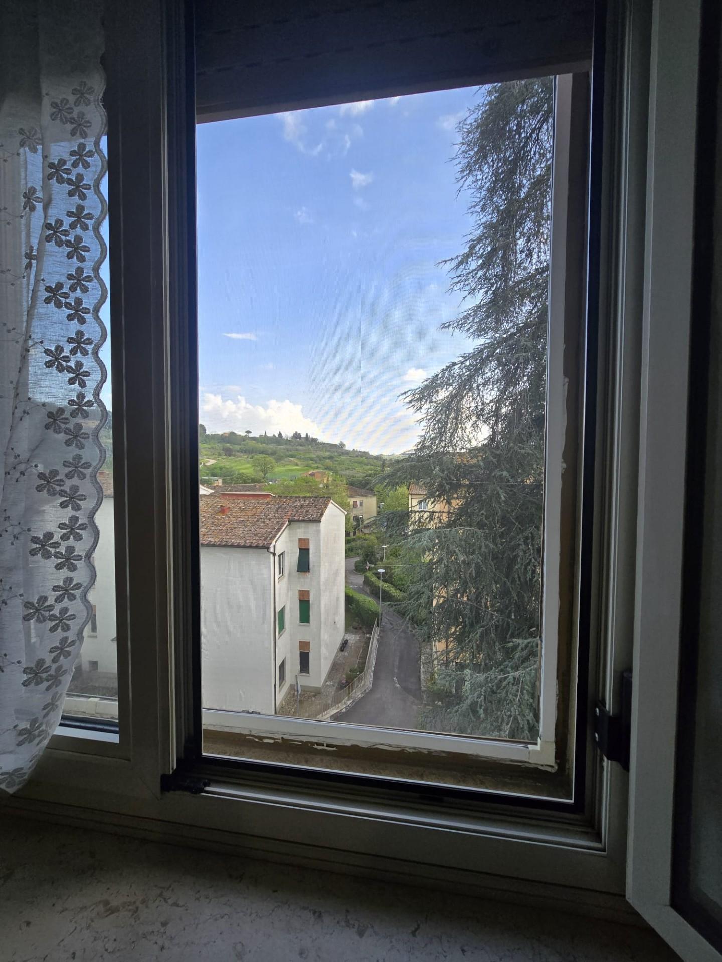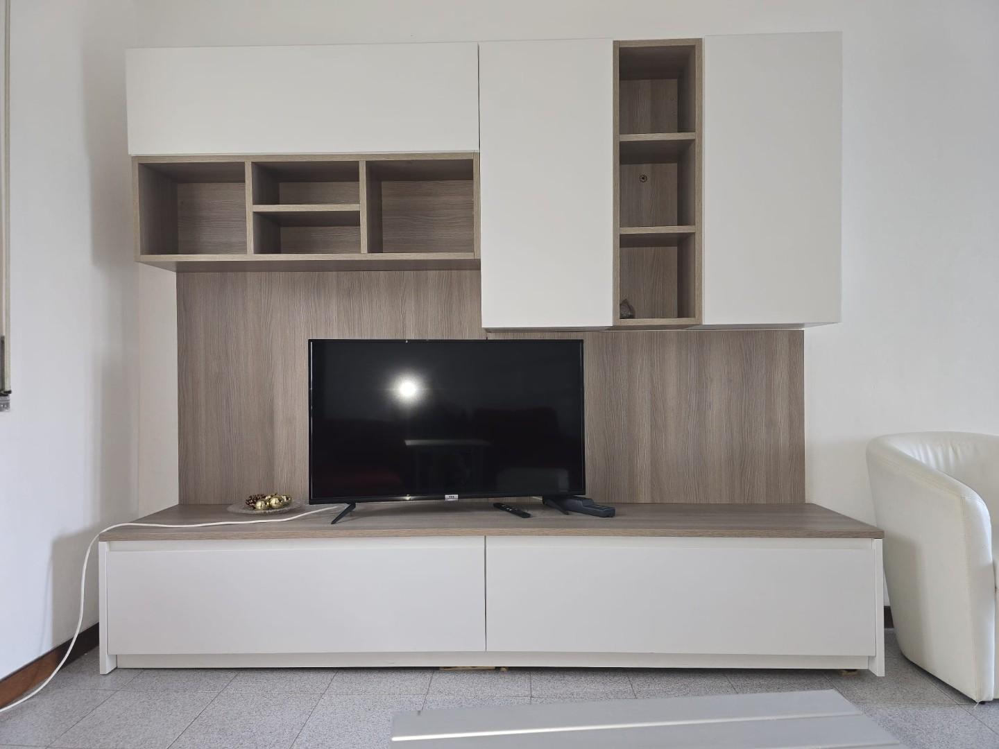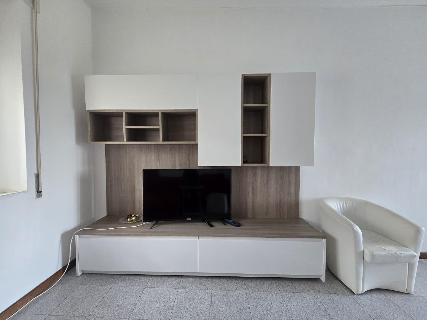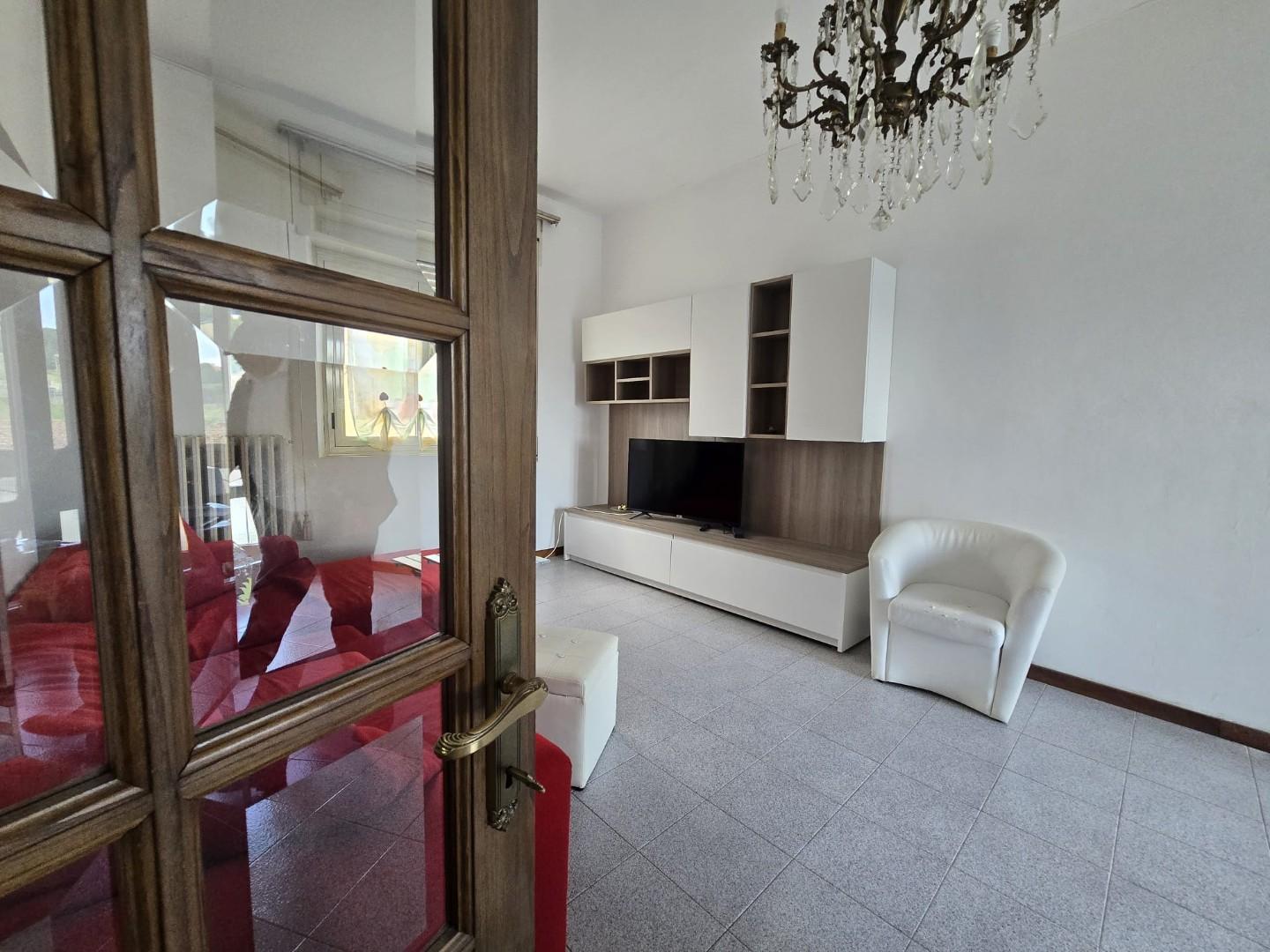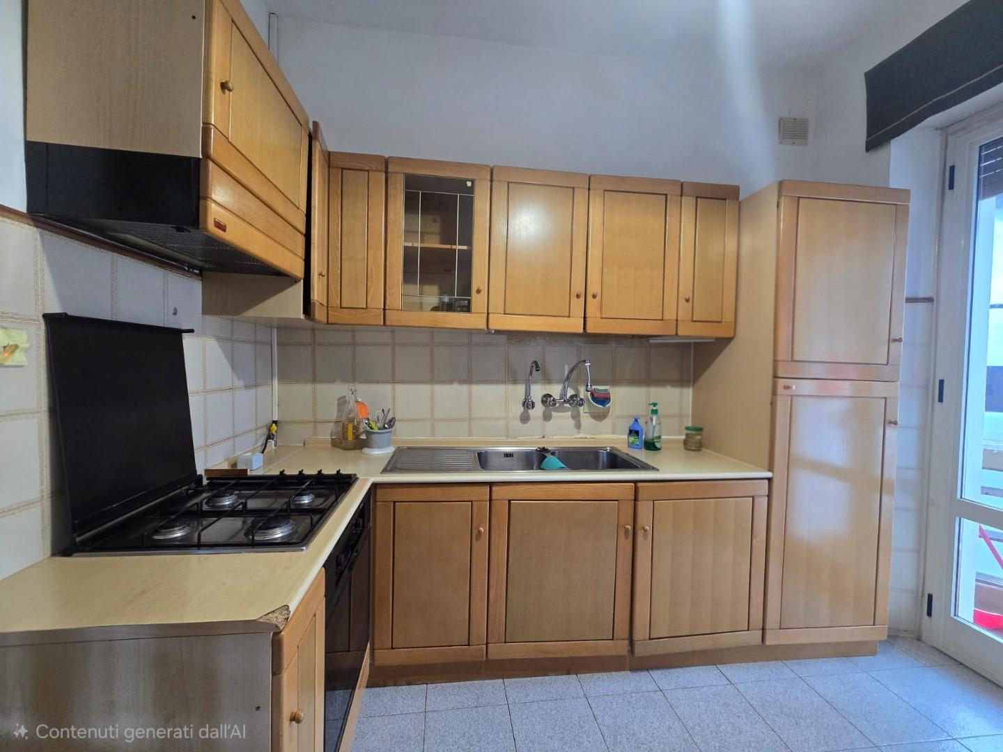Il soggiorno, ampio e particolarmente luminoso, è valorizzato dalla presenza sia di una finestra che di una porta finestra con accesso al secondo balcone, anch’esso verandato e attualmente utilizzato come zona lavanderia.
