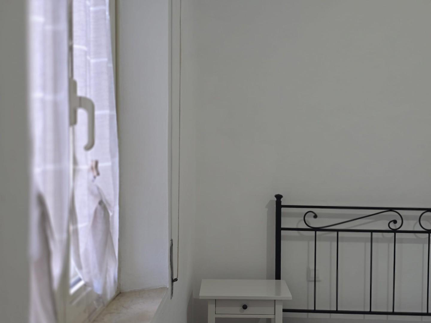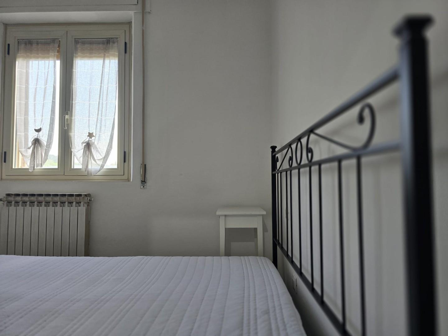 La zona notte si compone di due spaziose camere matrimoniali, ideali per una famiglia o per chi desidera ambienti generosi, un bagno finestrato e un ulteriore pratico ripostiglio.