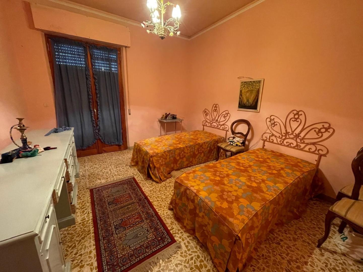 In zona residenziale, appartamento di mq 160, posto al piano primo di edificio tri-familiare, libero su quattro lati, composto da ingresso, ampio soggiorno con accesso a ampio balcone di mq 10, cucina abitabile con accesso al giardino, due camere matrimoniali, due camere doppie, due bagni finestrati. Due ampi balconi e un terzo balcone di collegamento al giardino. Completano la proprietà un garage di mq 30, 2° garage con cantina di mq 41, ampio giardino esclusivo di mq 315 in parte pavimentato per parcheggiare due auto. Impianto di riscaldamento recente. Da rivedere. Ottima posizione. Classe Energetica E 99,57 Kw/h mq anno.